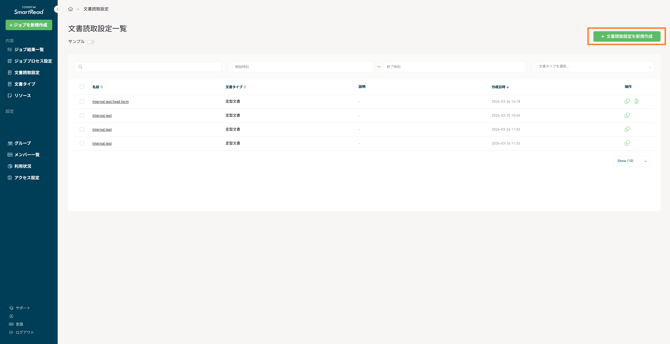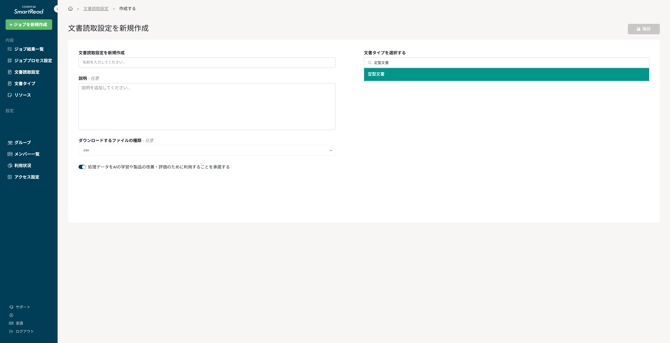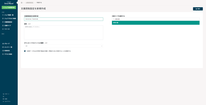 - [文書読取設定を新規作成] に文書読取設定の名前を入力し、[保存] を選択します。