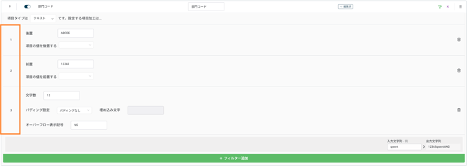 入力値の先頭に、[前置] に入力した値を追加します。
