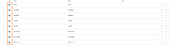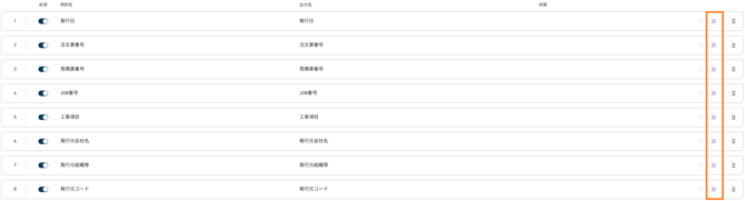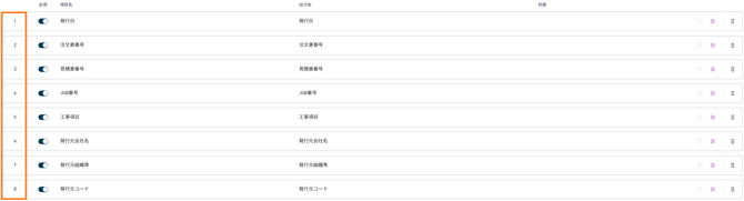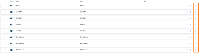 また、文書読取設定の読取項目の右端のアイコンをクリックアンドドラッグすることでも、項目の順序を変更できます。