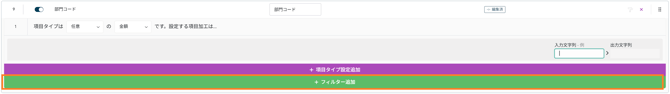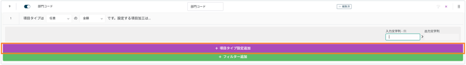 項目タイプ設定の設定画面を開くには、[項目設定] アイコンをクリックし、さらに [フィルター追加] をクリックします。