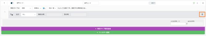 他のフィールドの値を元に出力値を設定します。[対象読取項目] の値に [パターン] が含まれる場合に、[適用値] を出力します。