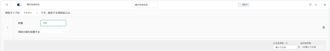 また、[項目の値を前置する] で選択した他の項目の値を入力値の先頭に追加することもできます。