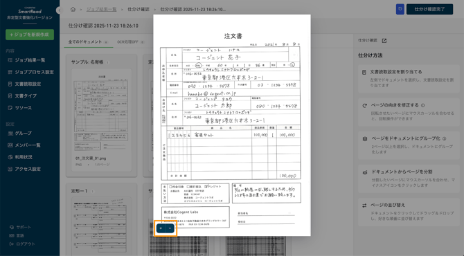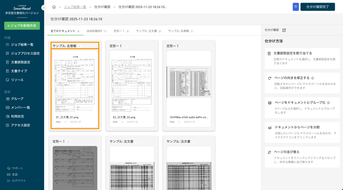 - ドキュメントに正しい文書読取設定が適用されていることを確認し、誤りがあれば修正する。